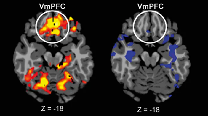 The difference between being stressed or resilient... The fMRI images starkly show the dynamic changes in the brain when overwhelmed - especially in the ventral medial prefrontal cortex (VmPFC).